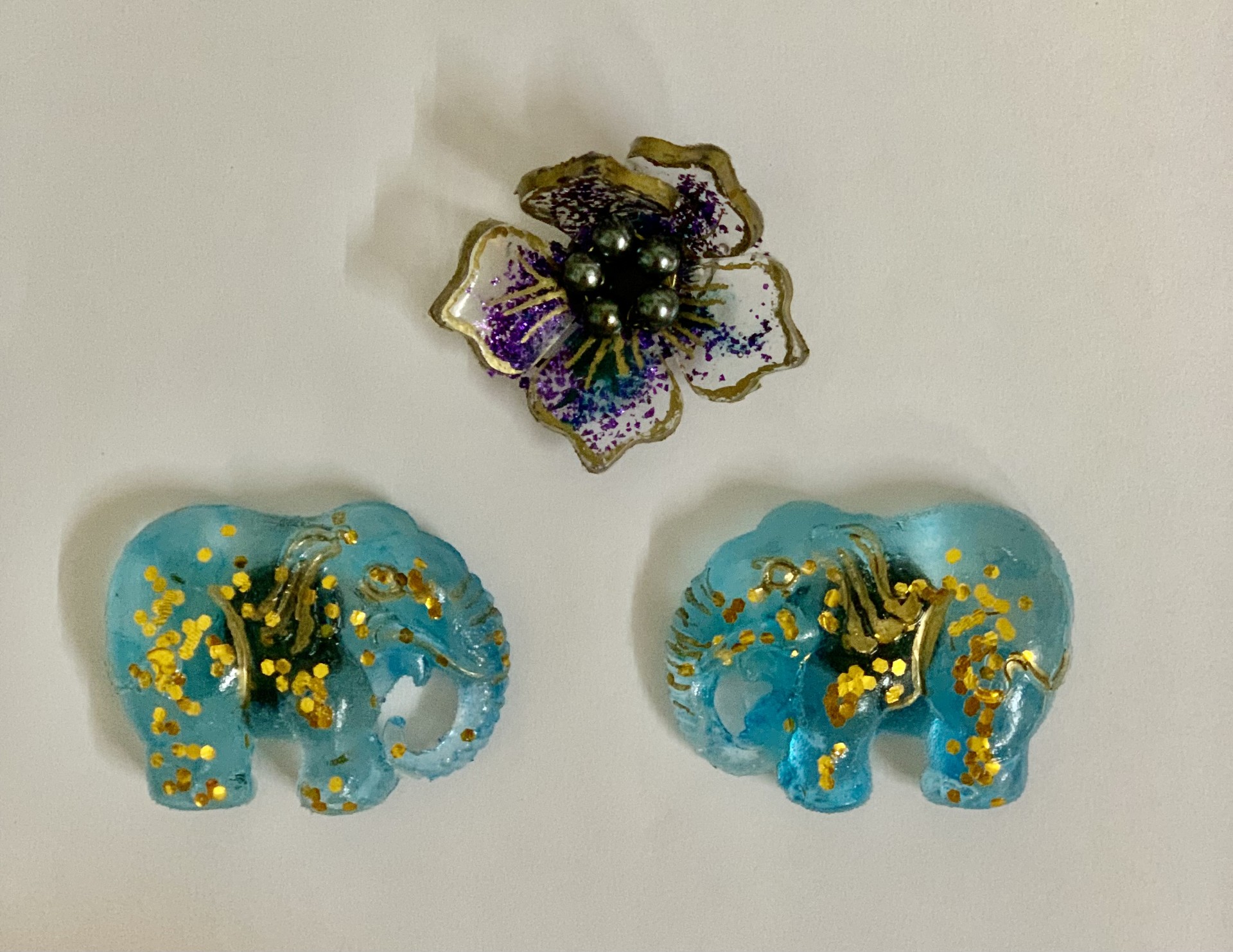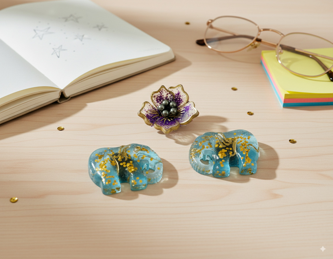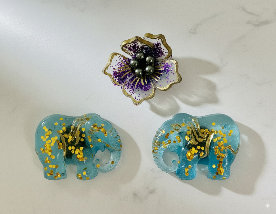 Elevate your kitchen or office with this beautiful set of 3 handmade fridge magnets ! ✨ This unique artisan collection features two charming, glittery green elephants with gold accents and one stunning purple and blue floral magnet. Each piece is crafted with care, perfect for holding your favorite photos and notes, or simply adding a touch of elegance and personality to any magnetic surface. A wonderful gift for elephant lovers and fans of unique, handcrafted decor! A wonderful and unique gift idea!