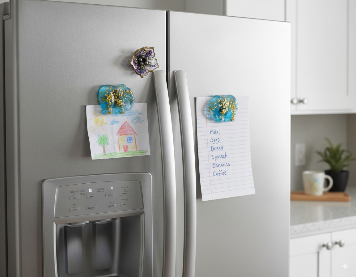 EXQUISITE HANDMADE CRAFTSMANSHIP: Each magnet is meticulously handcrafted from high-quality resin, featuring shimmering glitter, elegant gold-painted details, and vibrant colors. The unique, artisanal quality means no two pieces are exactly alike!